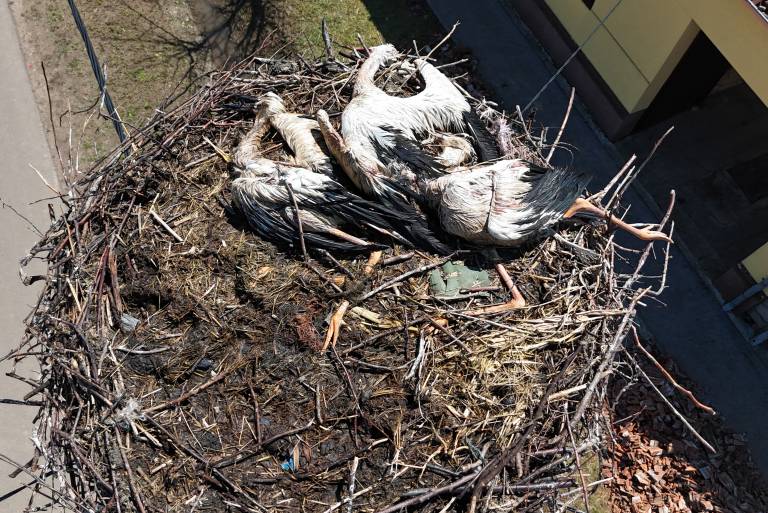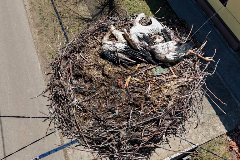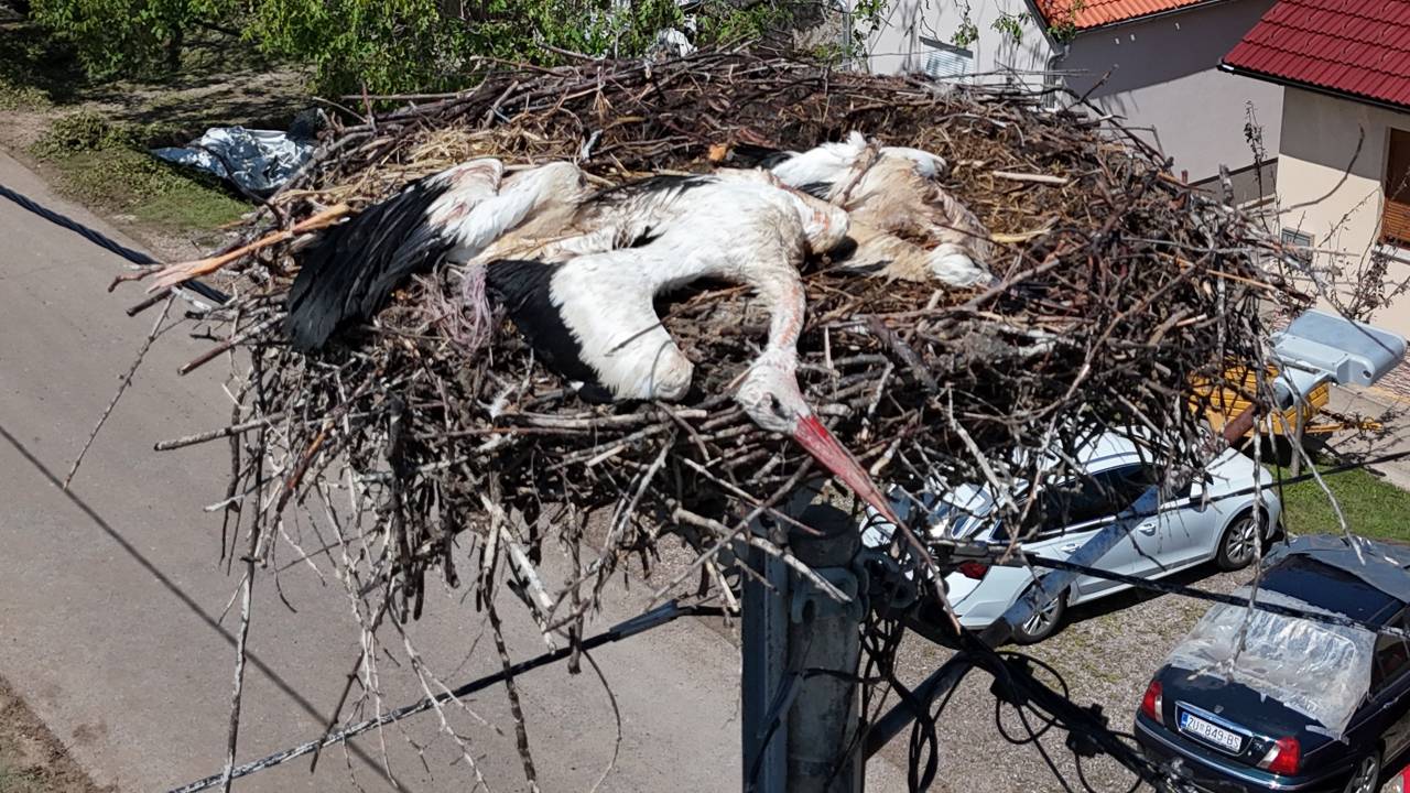 Štorklje kljub svojim instinktom za zaščito niso imele kam zbežati pred uničujočimi udarci toče, kar je privedlo do njihove tragične smrti.
