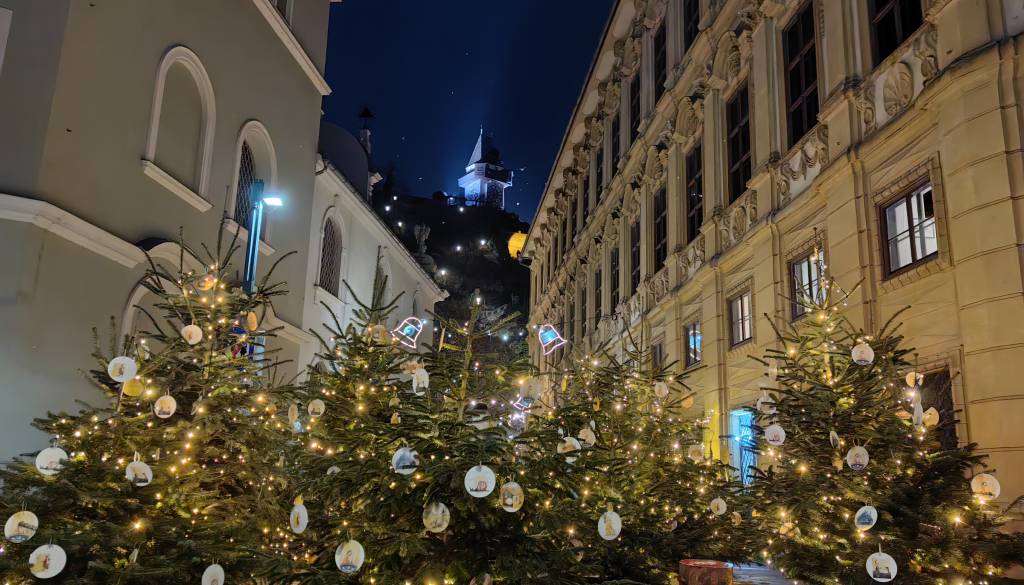 Za ljubitelje razgledov pa je priporočljiv vzpon na grajski hrib (Schlossberg), od koder se razprostira čudovit pogled na praznično okrašeno mestno jedro.