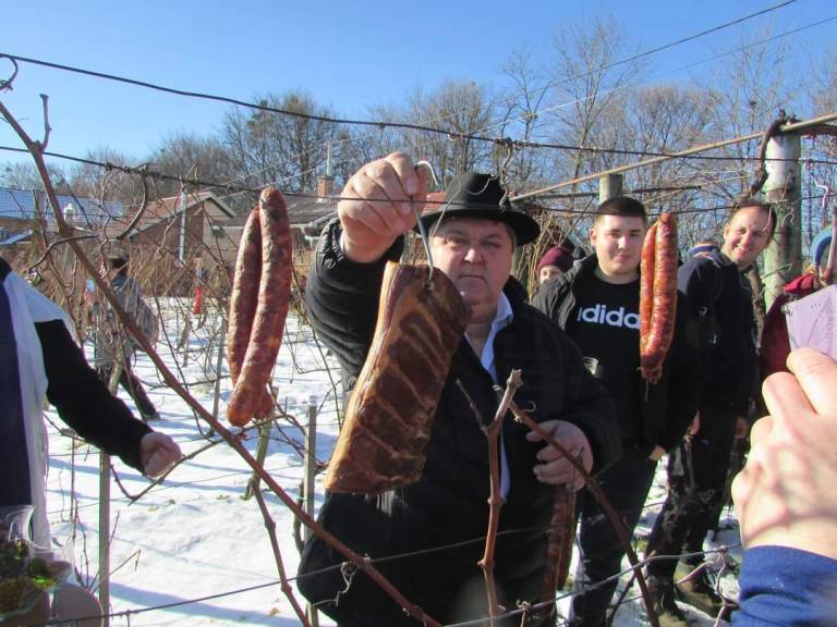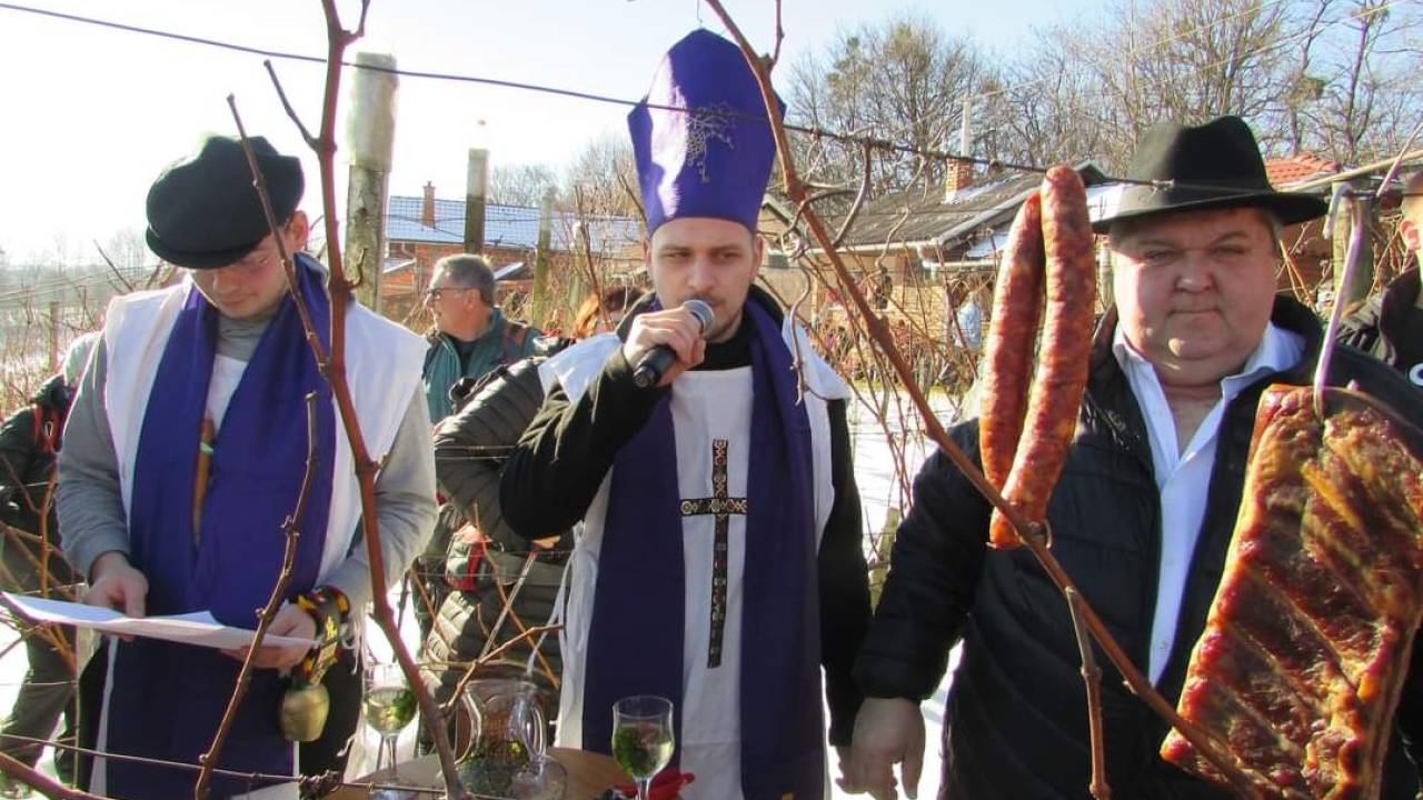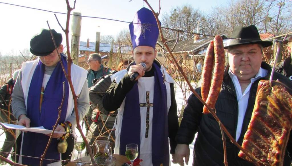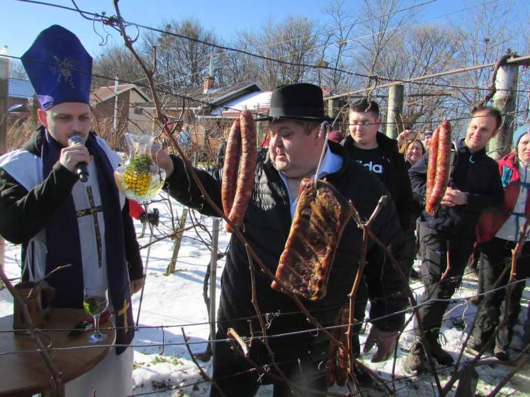Opravili so tudi simbolični rez vinske trte in na vinsko trto so po starem vinogradniškem običaju namestili mesne dobrote.