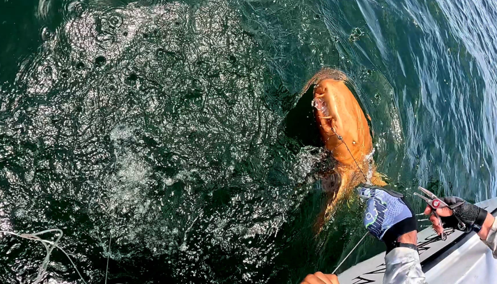 Ribič Juan Pablo je ob ribolovu v bližini narodnega parka Tortuguero naletel na prizor, ki ga v teh krajih še niso zabeležili. Na njegov trnek se je ujel morski pes svetlo oranžne barve z izrazito belimi očmi.