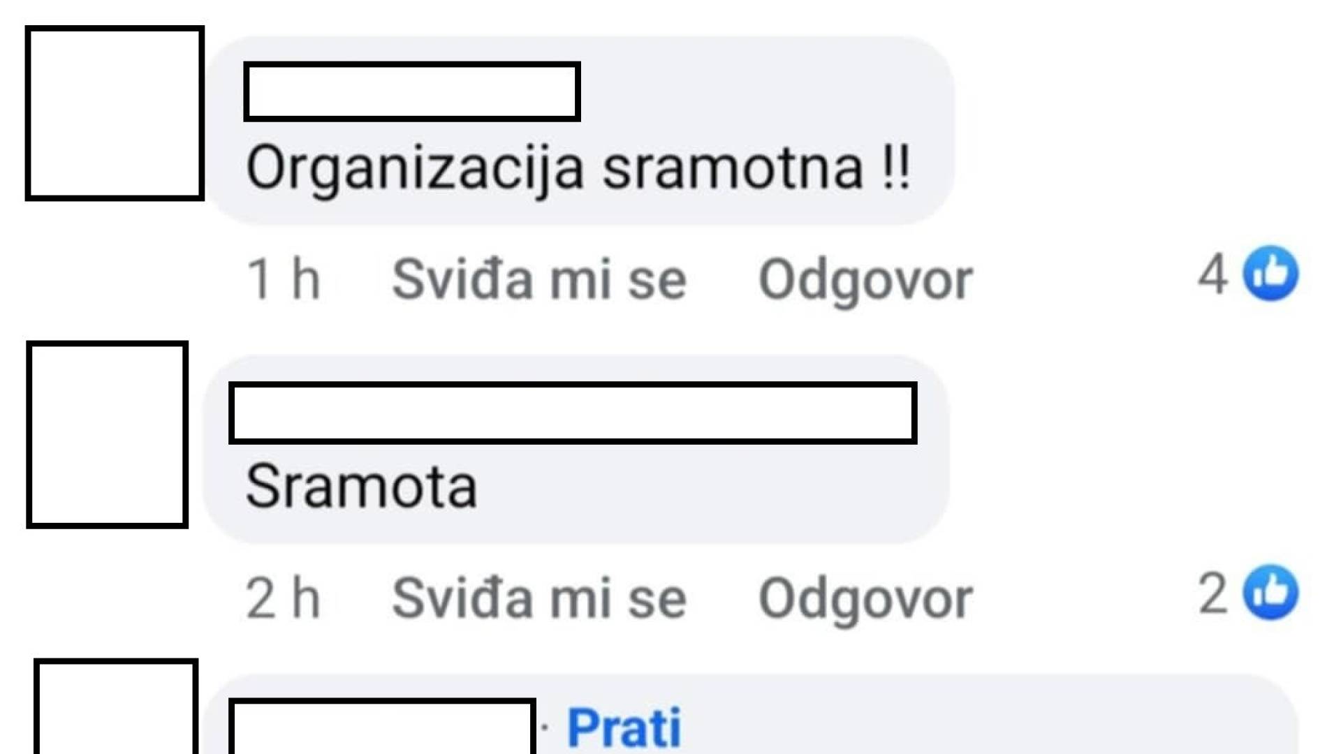 Zlasti ostre kritike so letele na komunikacijo organizatorjev, ki naj bi bila nejasna in nespoštljiva. »Zaposlili ste govorca, ki ne zna sestaviti dveh stavkov in se še krega z množico. Sanitarije z zavesami? To ne obstaja v civiliziranem svetu,« je bil le eden izmed ostrih komentarjev.
