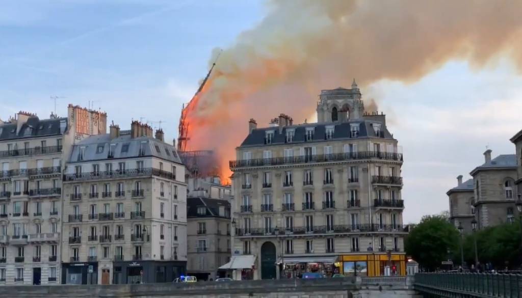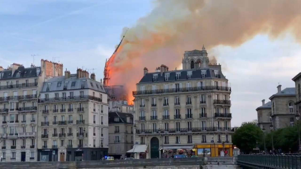 Družbena omrežja so v hipu preplavili posnetki in fotografije goreče katedrale, ki kažejo na požar v vrhu ene najbolj znamenitih cerkev na svetu. Novejši posnetki kažejo, da se požar širi in je že povsem zajel vrh katedrale, ognjeni zublji pa so vidni več kilometrov stran.