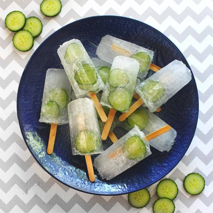 Ob tem zmešate gin, tonik in sok limete. V model za ledene lučke položite narezane kumare in jih prelijte z mešanico limete in gin tonika. In seveda naravnost v zamrzovalnik.