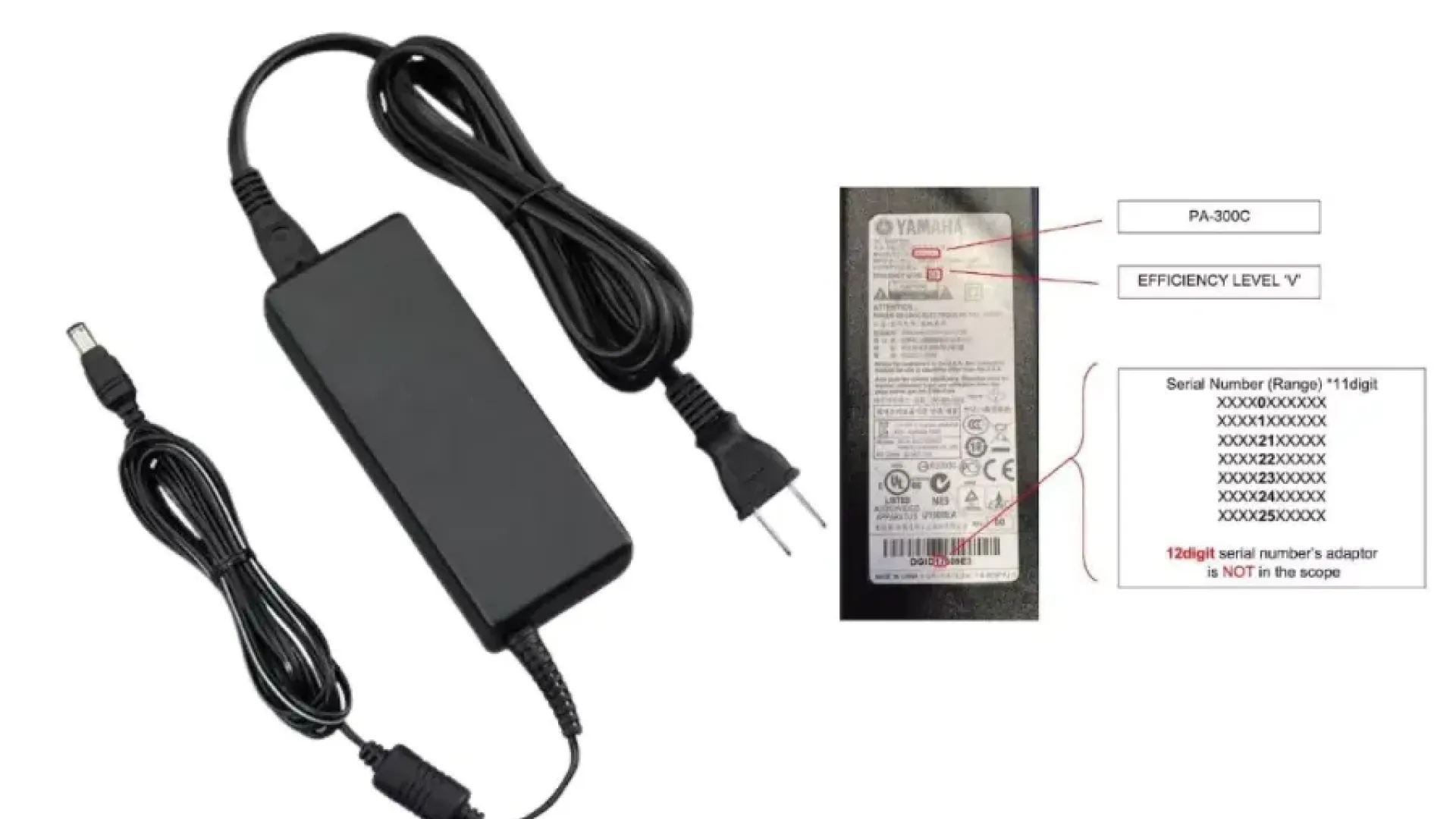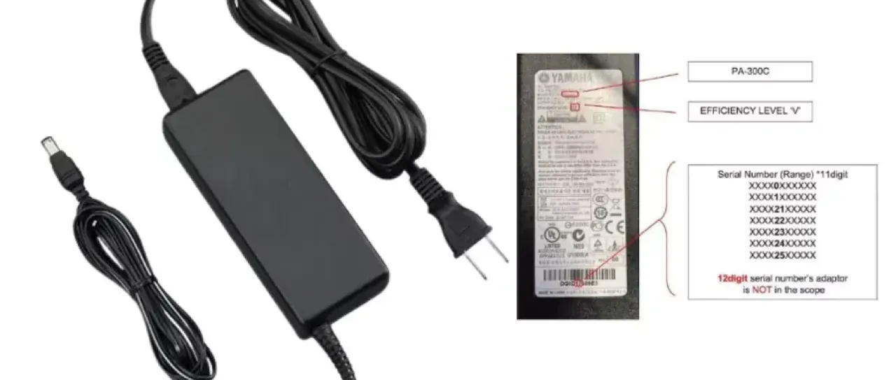 V veljavi je odpoklic dodatka, ki zadeva vse, ki uporabljajo klaviature znamke Yamaha. Napajalniki YAMAHA PA-300C, izdelani med julijem 2010 in majem 2012, lahko zaradi konstrukcijske napake predstavljajo resno požarno nevarnost.