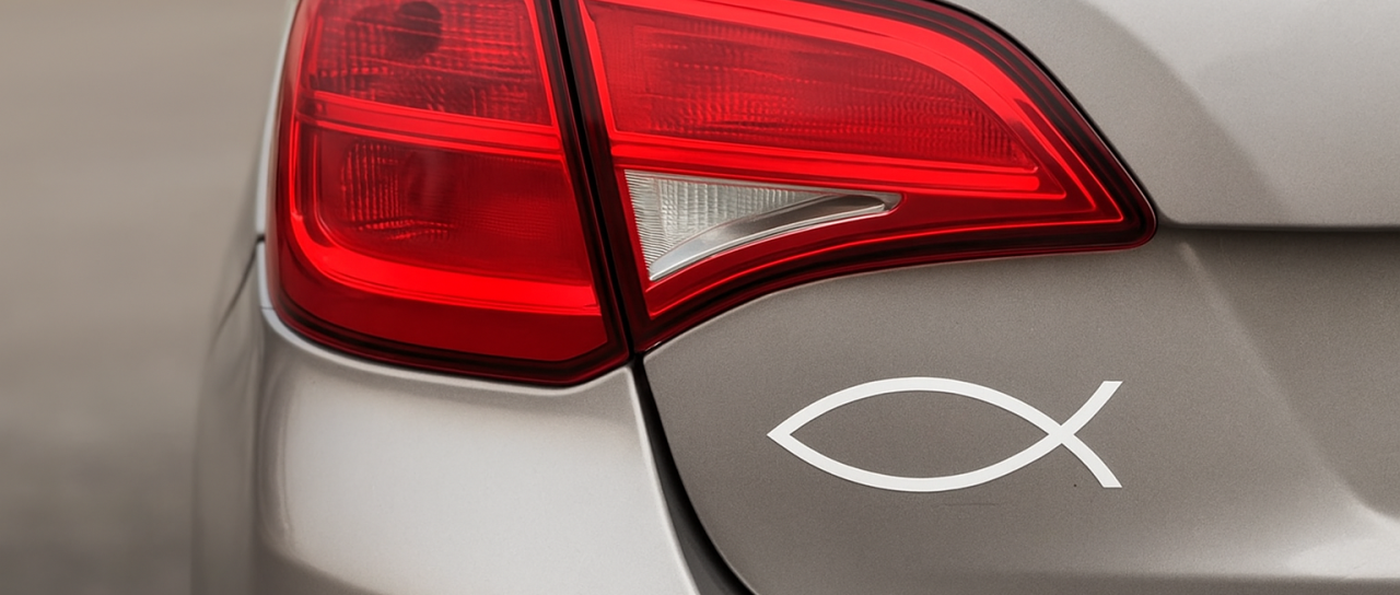 Mnogi avtomobili imajo na zadku nalepljen simbol ribe, ki ga vozniki pogosto uporabljajo kot izraz svoje osebnosti ali pripadnosti.