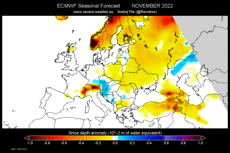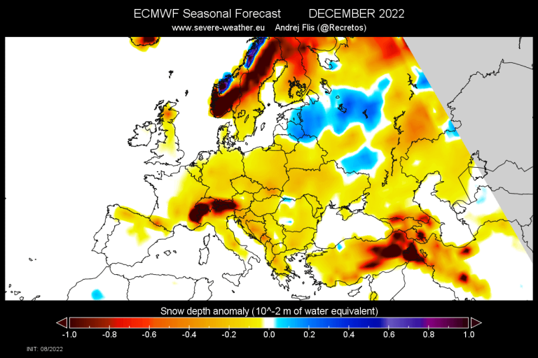 Čeprav napoved kaže že zelo zgodnje in nadpovprečne snežne padavine, po podatkih Severe weather Europe nič ne kaže na to, da bi pri nas imeli bel božič in novo leto. December naj bi postregel z zelo podpovprečno količino snežnih padavin v osrednji Evropi.