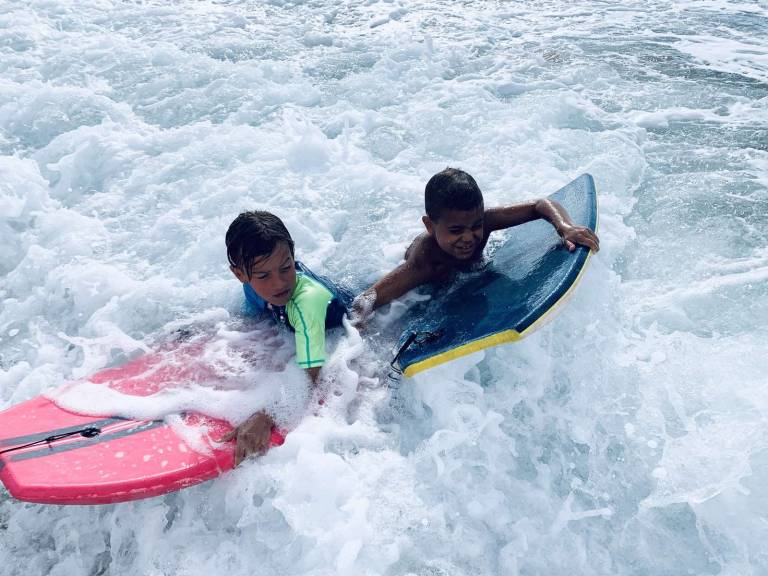 Pove, da so s Slovenci na Fuerteventuri tvorili pravcato skupnost, ki je štela 20 ljudi, s katerimi so postali pravi prijatelji: družili so se, prirejali so piknike, otroci pa so hodili ves čas naokoli bosi, delali potičke, srfali, jezdili valove na plovki (»bodyboarding«) …