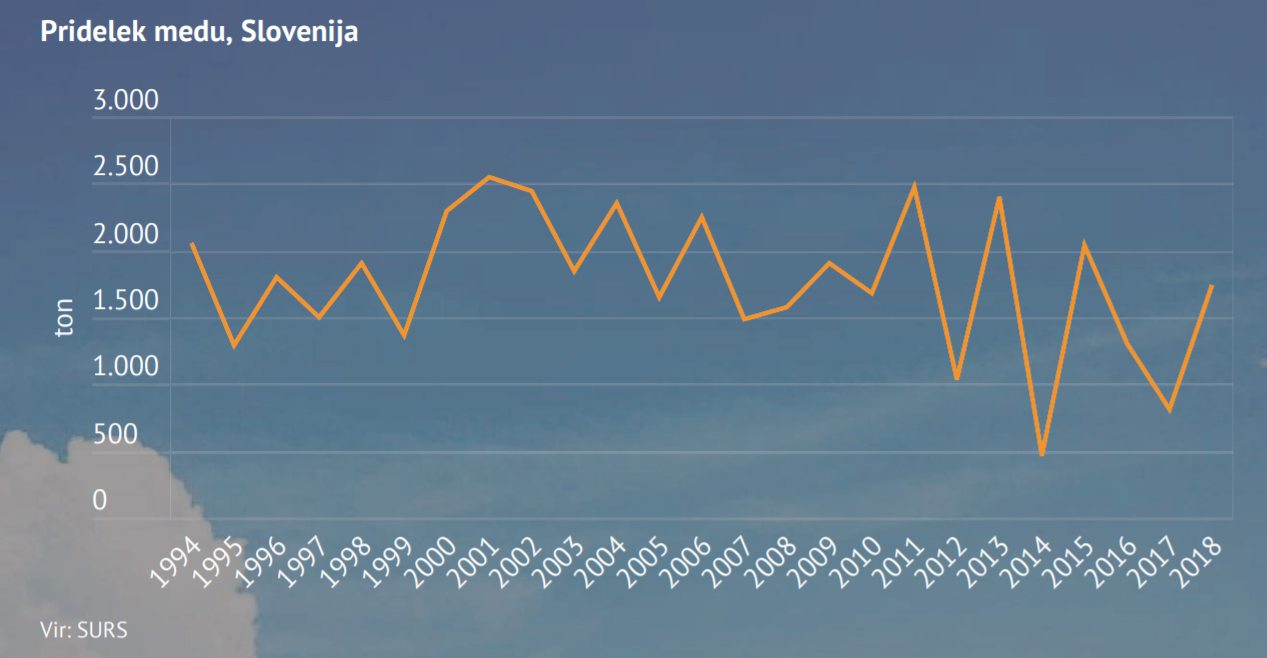 Pridelava medu med leti precej niha, saj je odvisna od vremenskih razmer. V letu 2018 smo v Sloveniji pridelali 1.746 ton medu.