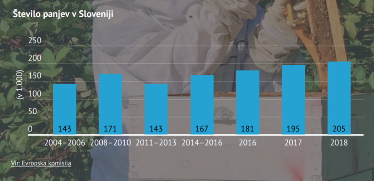 Število čebelarjev in število panjev v Sloveniji se povečujeta. Po zadnjih podatkih nacionalnega statističnega urada je v naši državi približno 11.350 čebelarjev, ki skrbijo za okoli 205.000 čebeljih panjev.