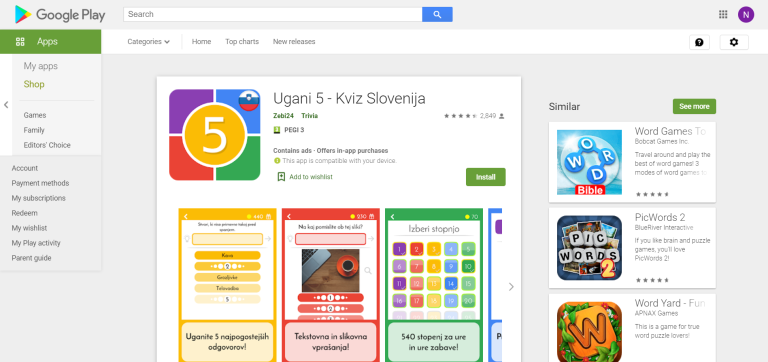Besedni vrtiček - Android