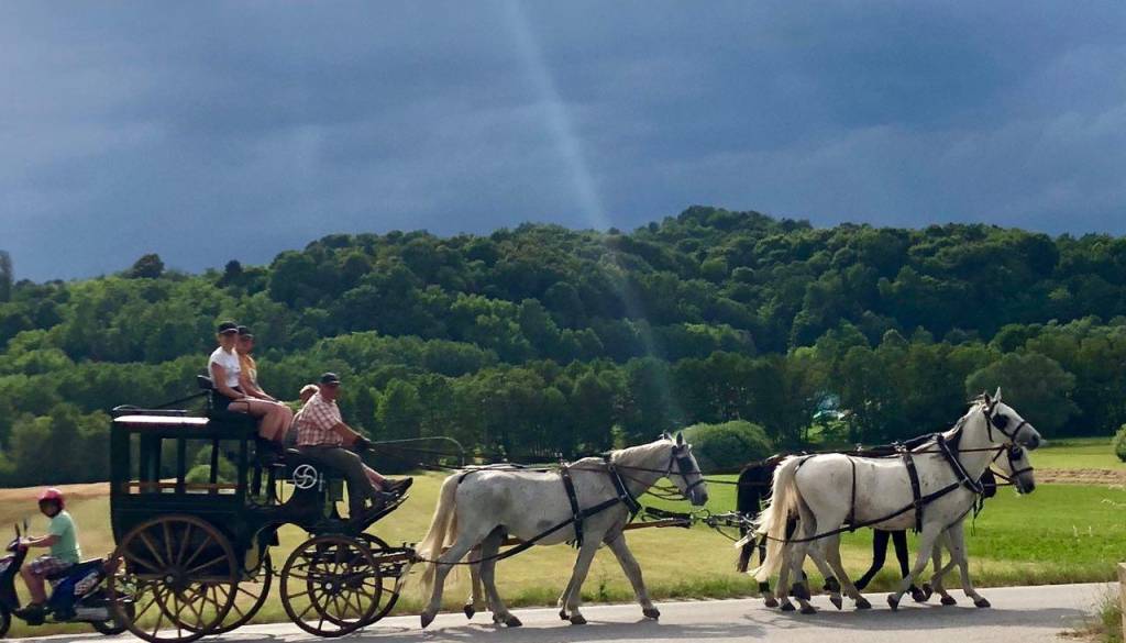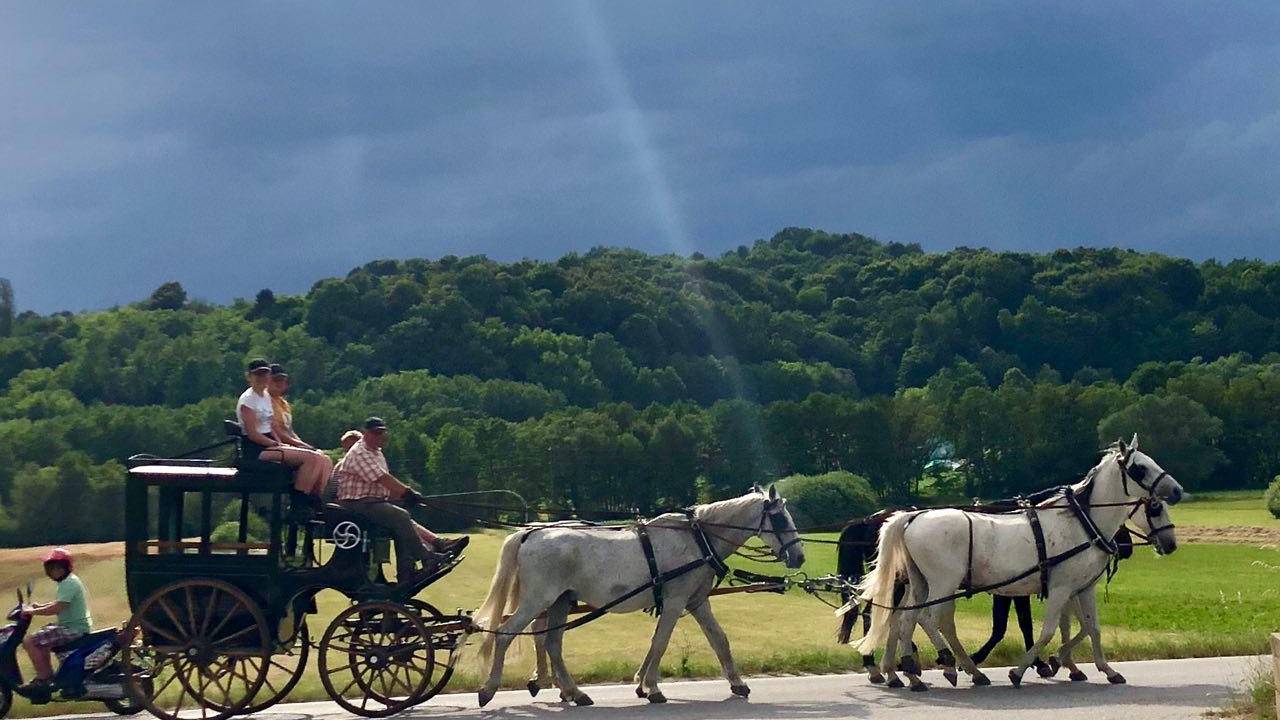 Včeraj ste lahko na Goričkem naleteli na nevsakdanji prizor. Nemška družina Matern, ki prihaja iz okolice Nürnberga, se je namreč podala na skoraj šesto kilometrov dolgo pot od Kobilarne Lipica do Španske jahalne šole na Dunaju.