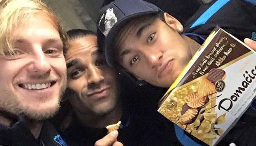 »Domaćico sem jedel v FC Barcelona. Rakitić mi jo pošilja tudi v Paris,« je ob fotografiji s škatlo Domačice v rokah dejal Neymar.