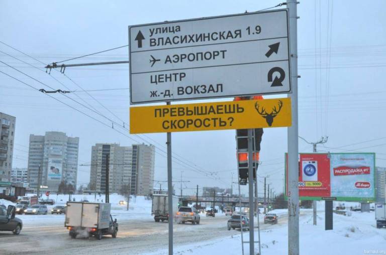 Nekatere od teh neobičajnih prometnih znakov so postavili aktivisti ali umetniki, drugi se nanašajo na živali, ki bi lahko zašle na cesto, spet tretji pa so postavljeni v čast književnih del ali pa kličejo k družbeni odgovornosti. V sodelovanju z RBTH vam predstavljamo nekaj najbolj zabavnih prometnih znakov iz vseh kotičkov Rusije.