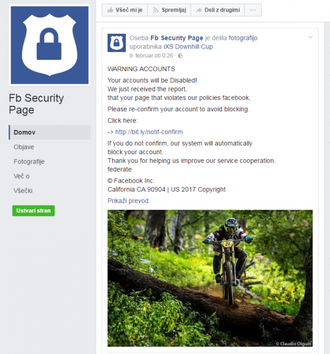 Kot opozarjajo pri Varni na internetu, se družbeno omrežje nikoli ne poslužuje tovrstnih pozivov za klike, uradno stran Facebook Security pa je moč prepoznati po modri kljukici.