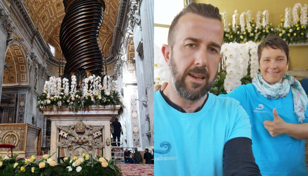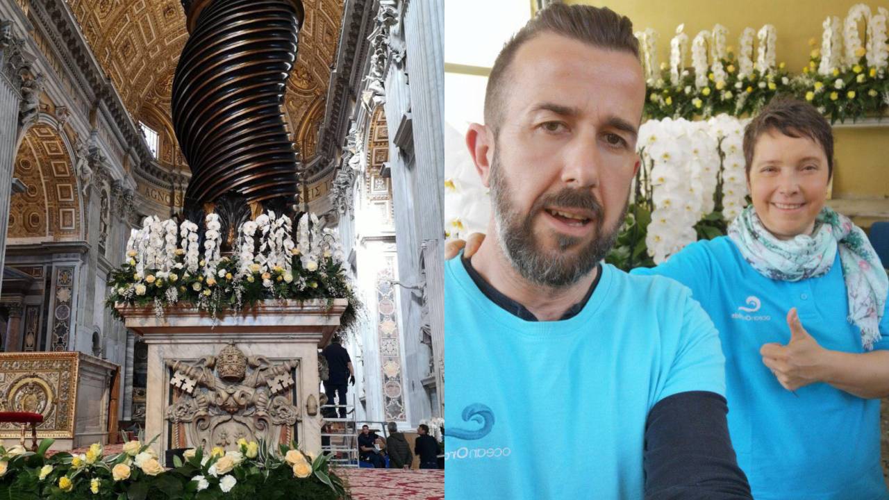 V Oasisove gobe, ki so bile izdelane posebej za to priložnost, sta že postavila kaskade in jih okrasila z rezanim cvetjem in zelenjem, iz vatikanskega vrta pa sta se danes preselila v baziliko sv. Petra, kjer bosta dokončala aranžiranje.