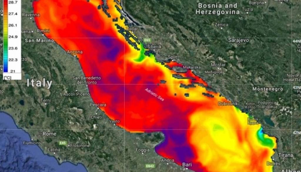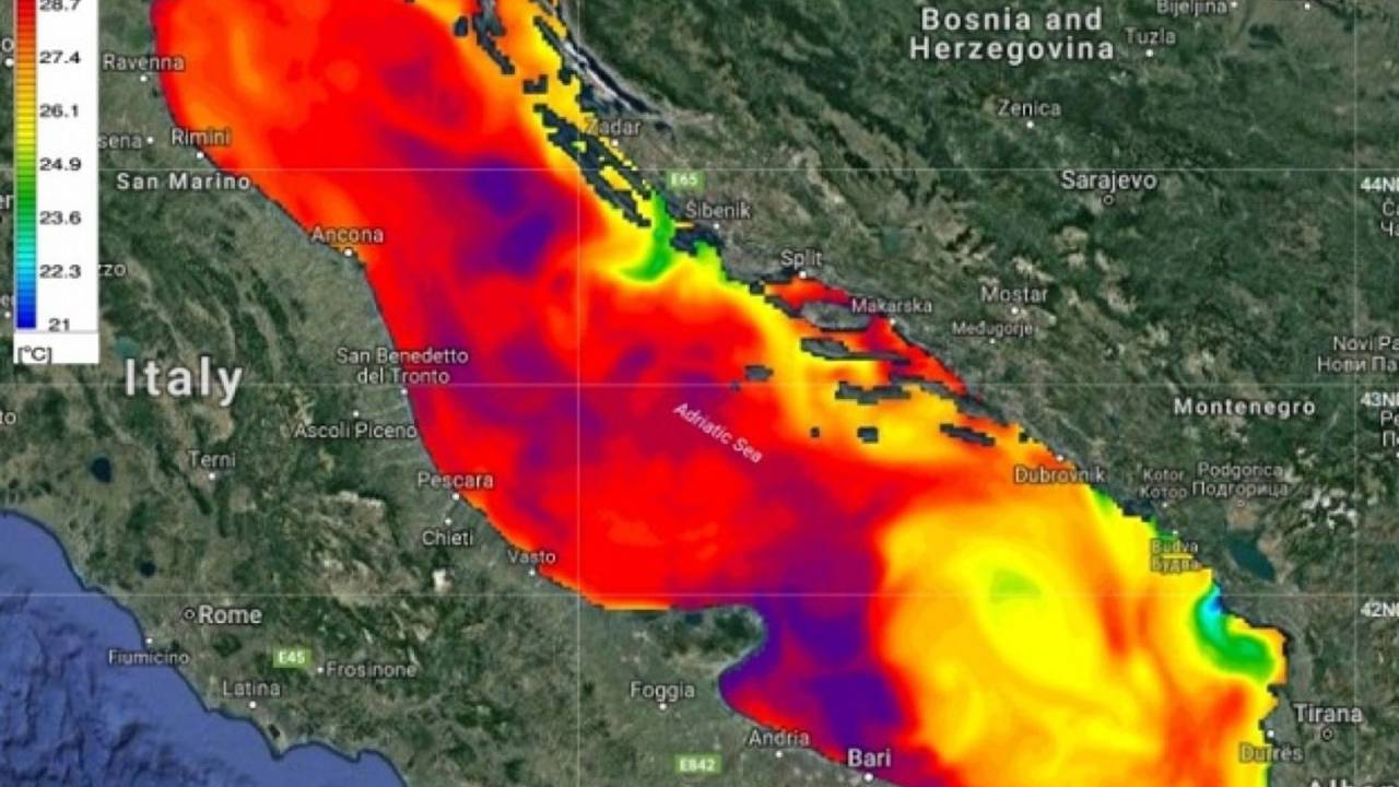 Najbolj se je morje segrelo vzdolž severne obale Italije in severozahodne obale Istre, kjer se temperature morja gibljejo od 29 do 30 stopinj Celzija, tudi sredina Jadrana, predvsem pred obalo Barija v Italiji je voda ekstremno topla.