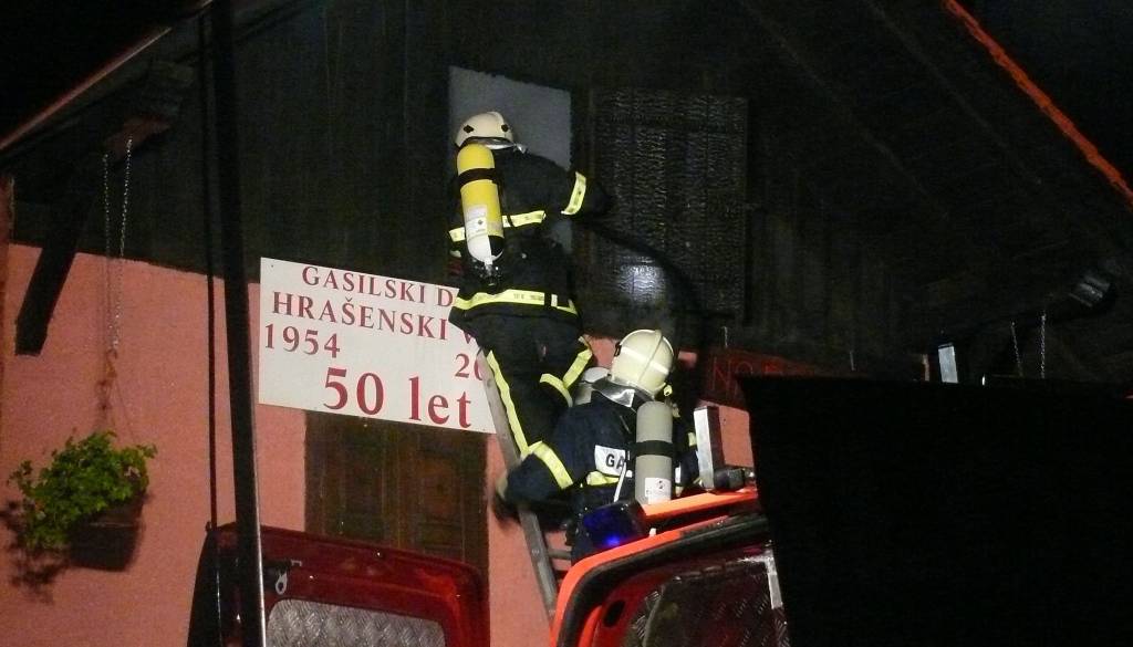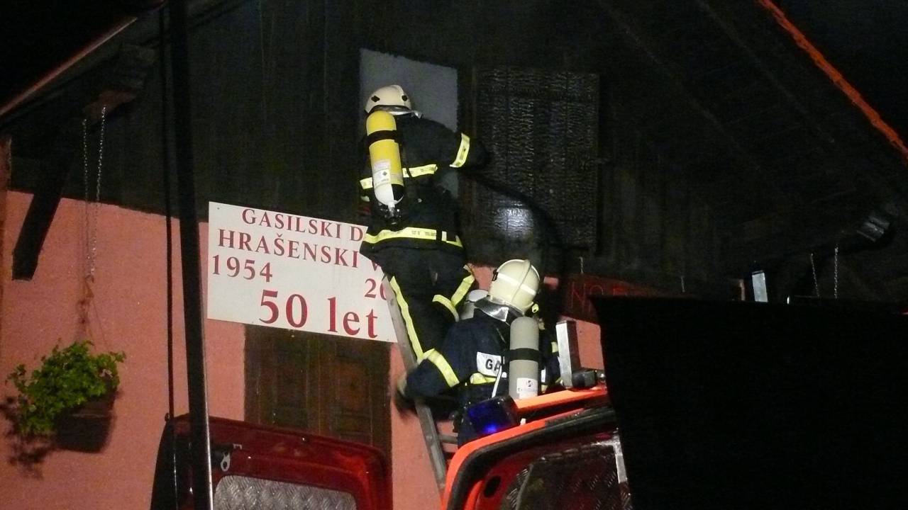 Požar je pravočasno uspelo pogasiti gasilcem iz PGD Hrašenski Vrh, PGD Kapela, PGD Janžev Vrh, PGD Vučja vas ter PGD Okoslavci tako, da je celotna gasilska oprema gasilskega društva ostala nepoškodovana“. Takratni poveljnik PGD Hrašenski Vrh Vinko Vogrinec, je enako kot vsi njegovi kolegi bil šokiran. Povedal je, da je velikokrat sodeloval v gašenju in reševanju po širšem območju, da pa se ne da opisati kako hudo je, ko gori pri tebi doma, ko gori vse tisto, kar so „naše dedje, očetje in mi ustvarjali polnih 55 let“. Razložil je kako hudo je bilo, ko so prejeli sporočilo, da gori njihov dom, glavno zbirališče krajanov, pravzaprav prostor, brez katerega si, ne le gasilci temveč vsi drugi krajani, težko predstavljajo življenje, še posebej v zimskem času.