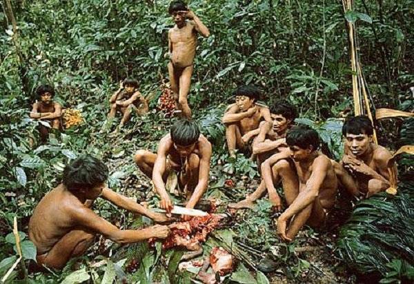 Iz zgodovine je znano, da so Melanesani iz Papue Nove Gvineje in ljudstvo Wari v Braziliji prakticirali, da so trupla umrlih pojedli. Na tak način naj bi izločili strah in skrivnost, ki obdaja pojem smrti. Po nekaterih podatkih naj bi pleme Yanomami, ki živi na območjih Brazilije in Venezuele, ta običaj še vedno ohranjalo.