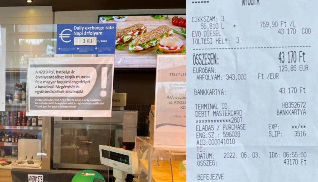 »Prosimo, upoštevajte, da je cena 479,9 forintov za liter na voljo le vozilom z madžarskimi registrskimi oznakami. Hvala za razumevanje!«