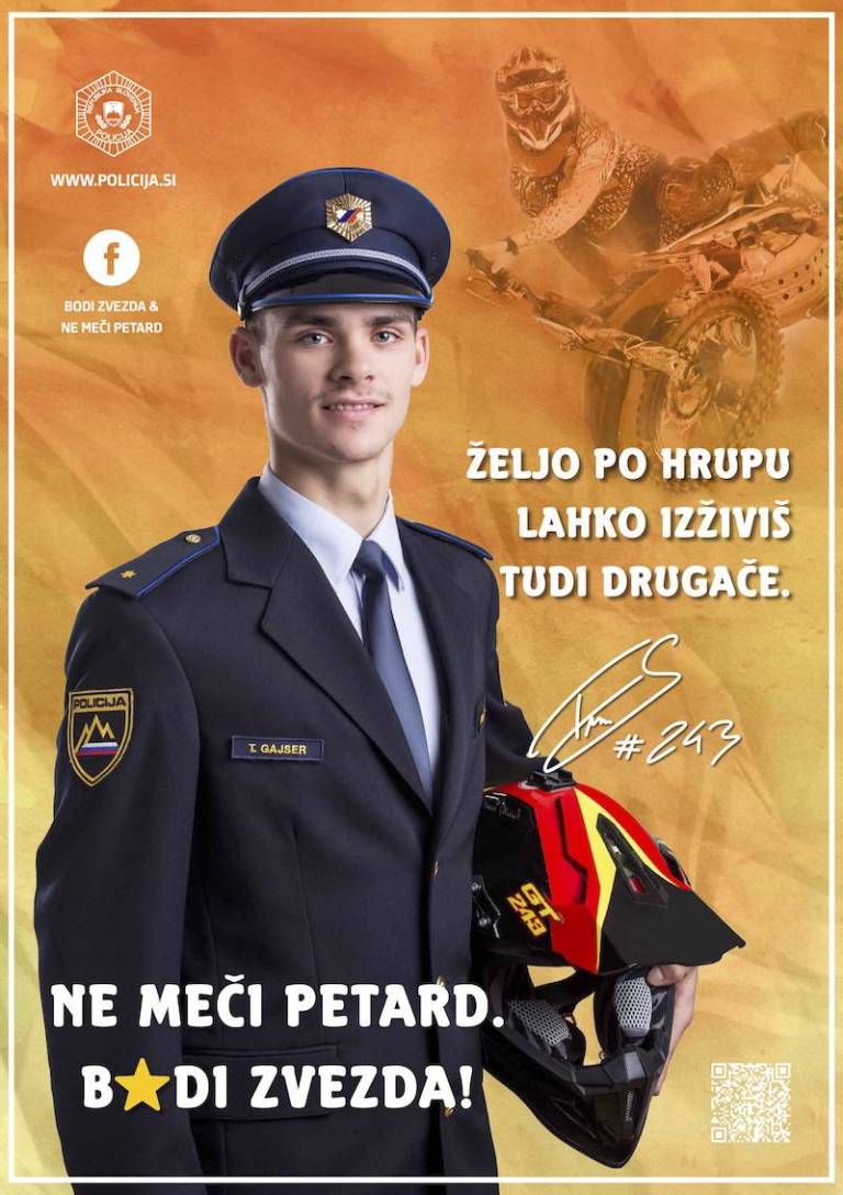 "Zato sem se odločil, da kot vrhunski športnik, zaposlen v policiji, podprem projekt Bodi zvezda, ne meči petard! in tako morda koga prepričam, da so prazniki lahko veseli tudi brez pokanja. Željo po hrupu je mogoče izživeti tudi drugače in jo usmeriti v kaj bolj koristnega. Prav to sem storil tudi sam, in svoj 'ventil' že pred časom našel v športu. V življenju nisem prižgal niti ene petarde! Zato pozivam vse mlade in tiste malo manj mlade – naredite si december vesel brez izzivanja usode. Če se že ne morete odpovedati pirotehniki, jo uporabljajte varno, pa tudi uvidevno tako do ljudi kot do živali, ki zaradi nenehnega pokanja zares trpijo," je pozval Tim Gajser.