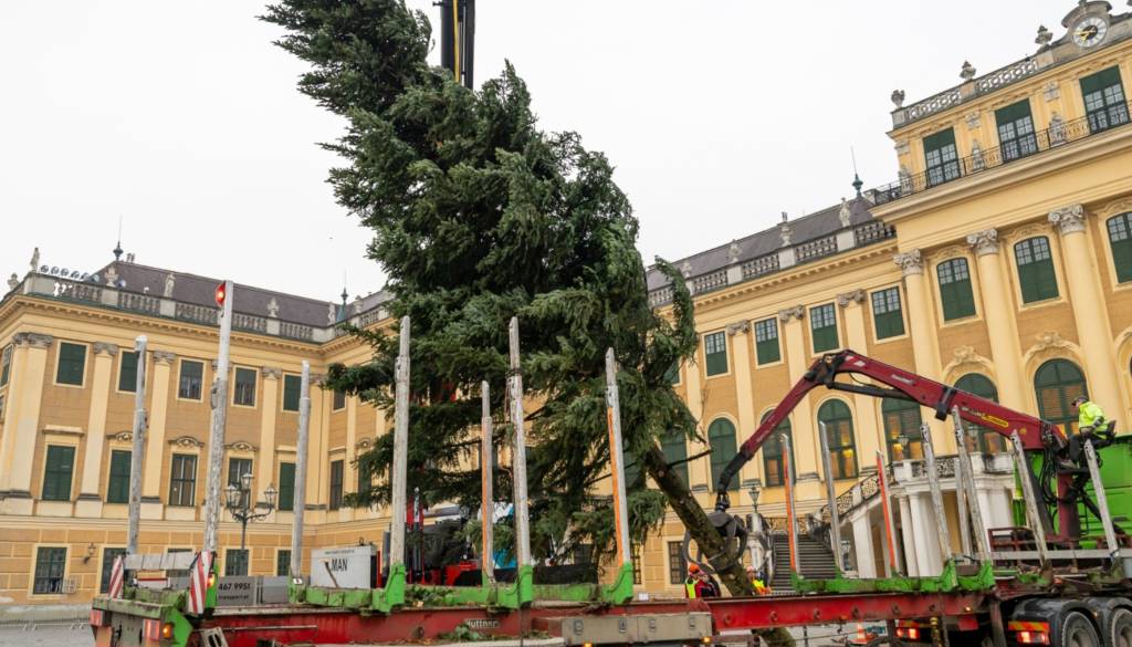Približno 160 let staro smreko so posekali na Solnograškem, na Dunaj pa so jo prepeljali z vlačilcem s prikolico, poroča avstrijska tiskovna agencija APA.