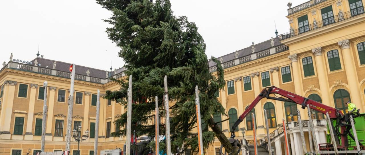 S postavitvijo božičnega drevesa se končujejo priprave na tradicionalni adventni sejem pred palačo Schönbrunn, ki ga bodo letos odprli 6. novembra.