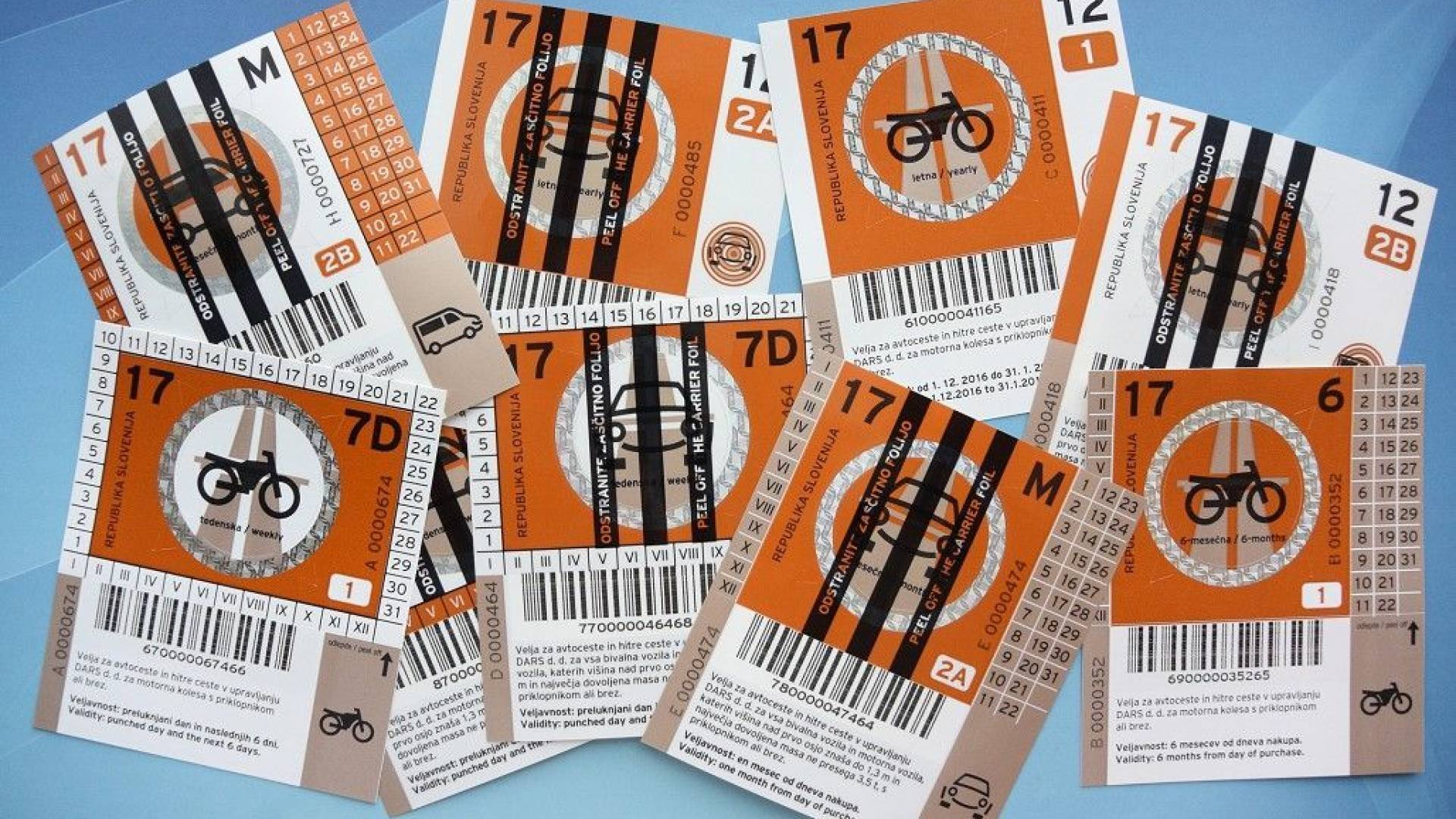 Vinjete za leto 2017, ki so trenutno v tisku in bodo v prodaji na voljo od prvega decembra letos, so kovinsko oranžne barve.