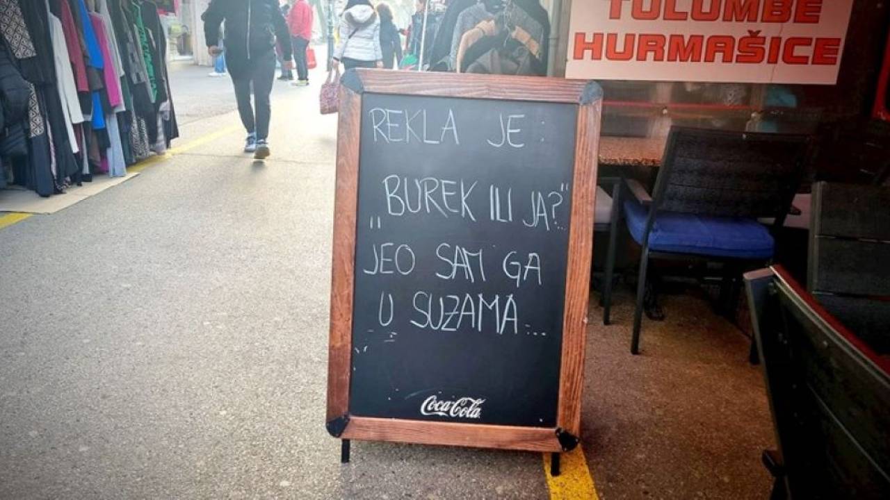 Hrvaški medij Index je pritegnil hudomušni napis pred vhodom ene izmed prodajaln bureka.