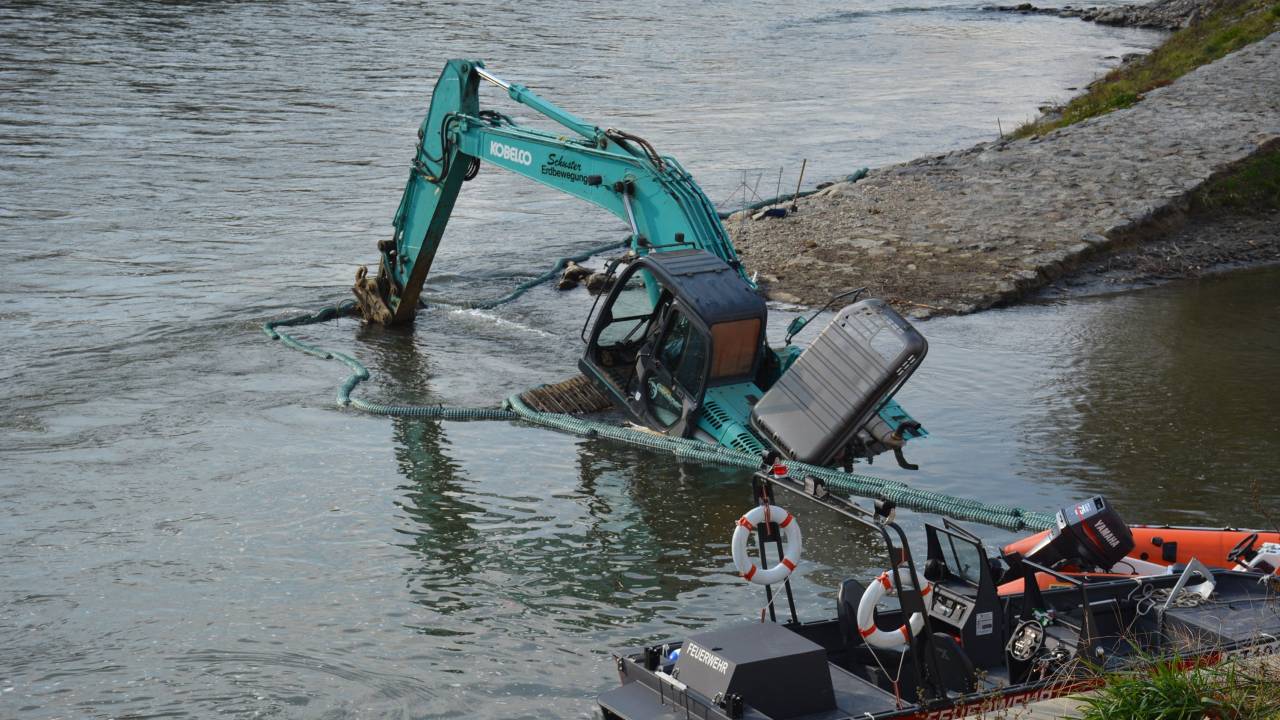 Na prizorišče nesreče bo tedaj namreč lahko prišel poseben žerjav, aktivirani pa so bili tudi slovenski potapljači iz Gornje Radgone. Ti bodo bager poskušali pritrditi, da se ta med reševanjem ne bo nekontrolirano premikal.
