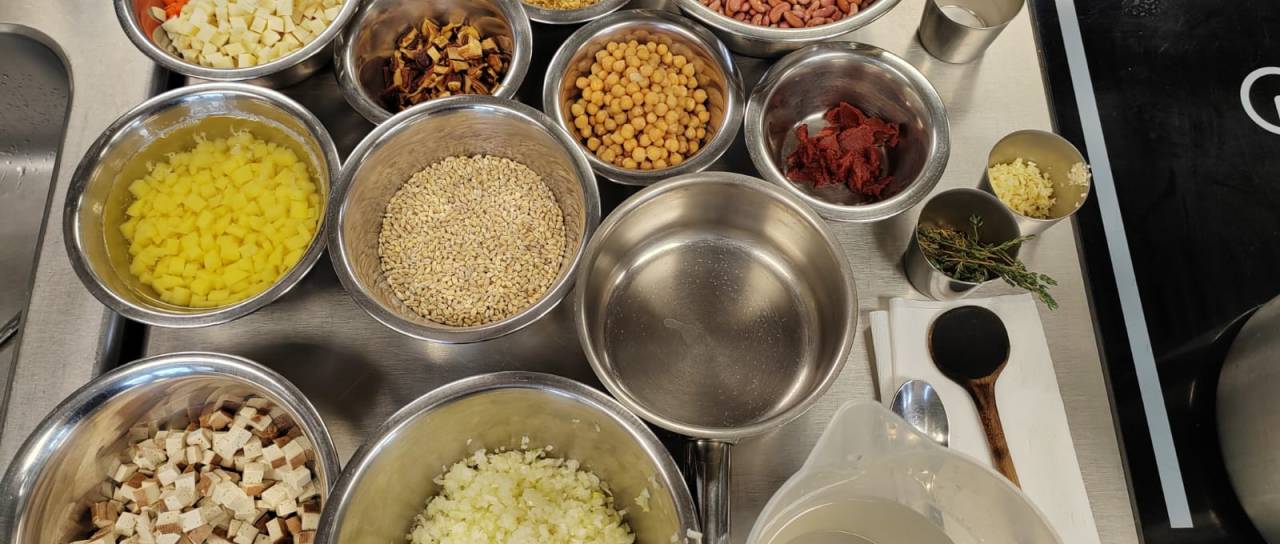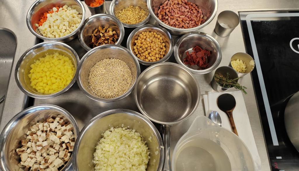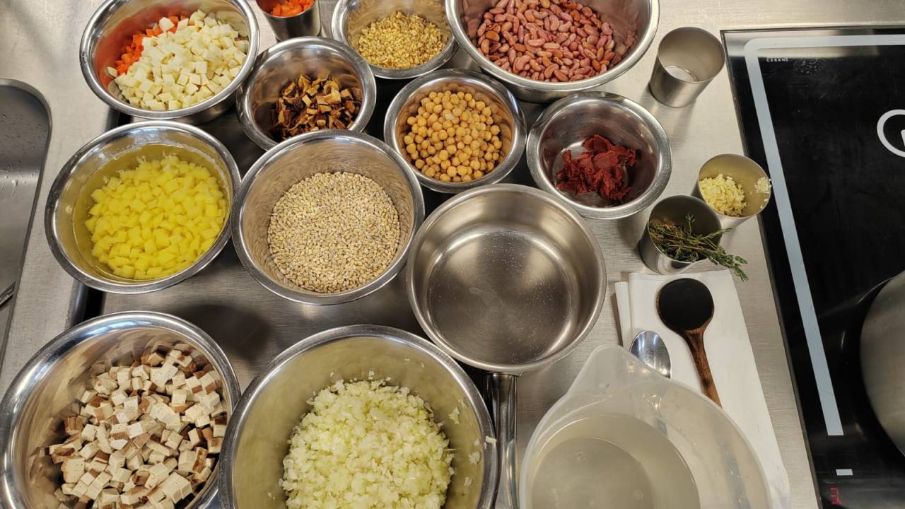 Sestavine za pripravo astronavtskega zajtrka so kupili kar v Houstonu, njihov recept pa je vseboval 19 sestavin, in sicer ječmen, dimljen tofu, čebulo, krompir, korenček, peteršiljevo korenino, pastinak, fižol, čičeriko, suhe hruške, paradižnikovo mezgo, orehe, olivno olje, česen, sol in nekatere začimbe.