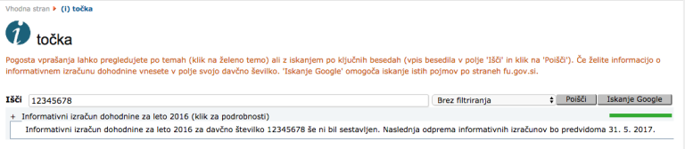 Kako preveriti, kdaj boste dobili informativni izračun dohodnine?