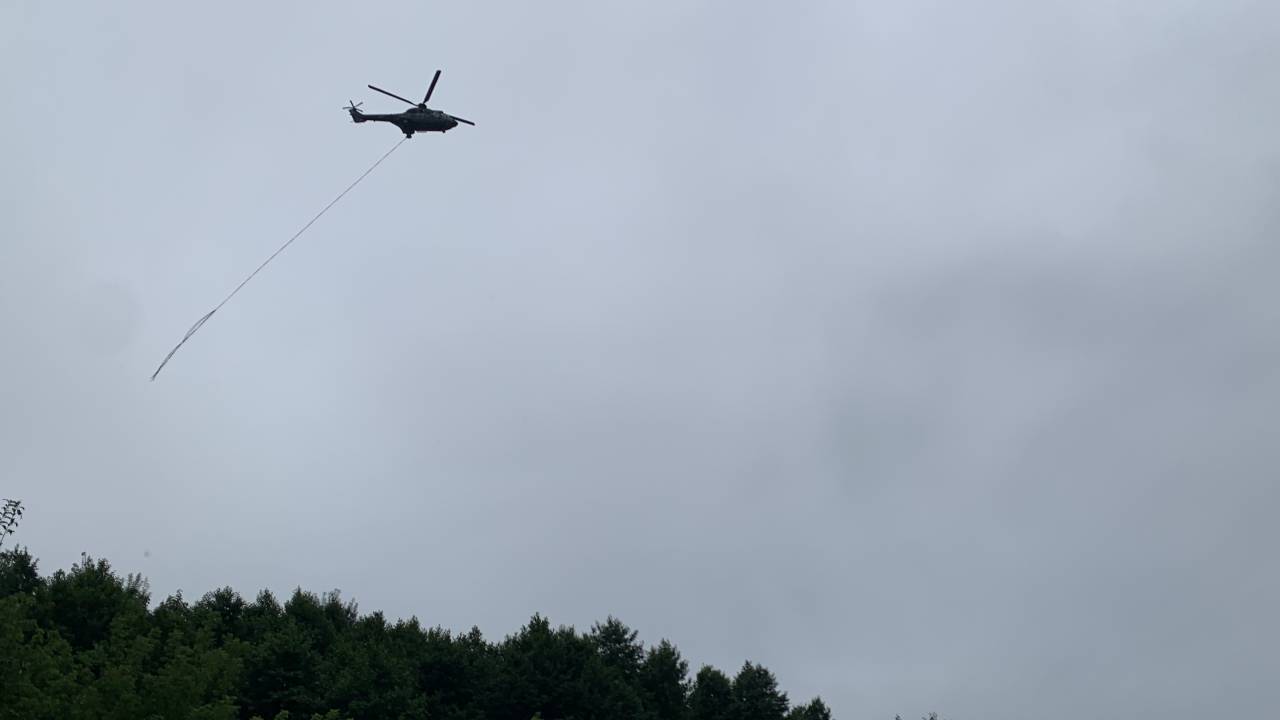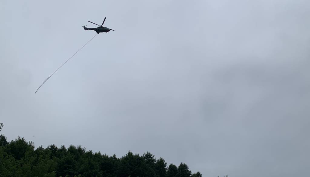 Helikopter hrvaškega vojnega letalstva je skupaj z osmimi pripadniki hrvaške vojske v Slovenijo prispel v nedeljo dopoldne ter pomaga pri zajezitvi in utrditvi nasipov na Muri.