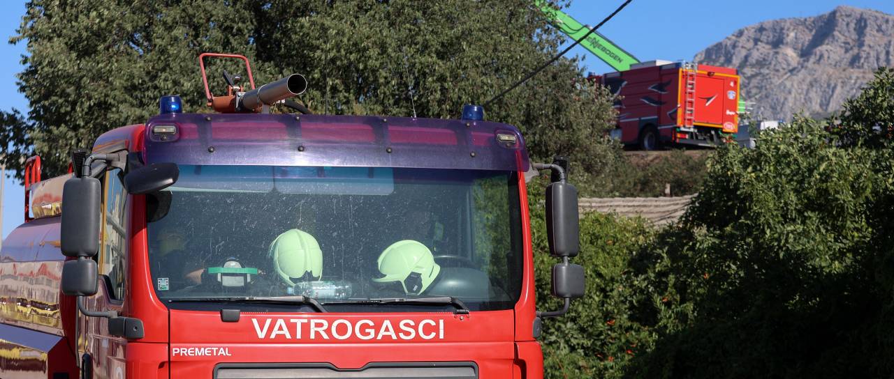 »Razmere so težke. Osredotočeni smo na obrambo hiš in preprečevanje tega, da bi se ogenj razširil na drugo stran ceste,« je sporočil poveljnik šibeniške intervencijske enote nekaj po 12. uri.