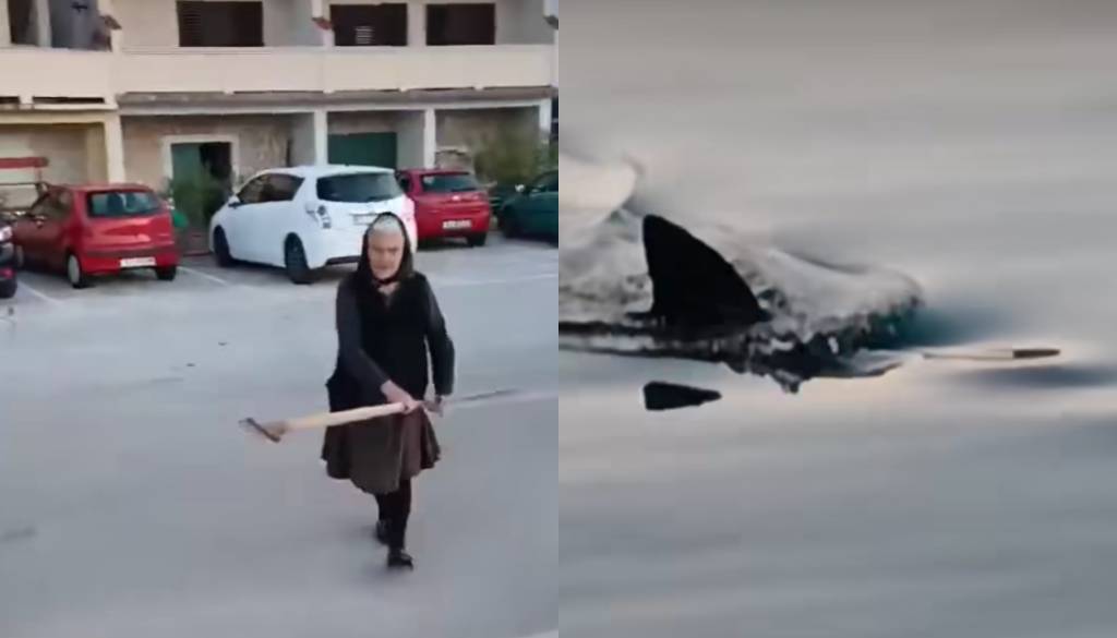 Na prvi pogled običajen ulov hobotnice se je v hrvaškem obalnem mestecu spremenil v prizor, ki ga ne vidiš vsak dan. Medtem ko je babica s popolno natančnostjo vihtela osti, je za njenim hrbtom iz morja pokukala plavut morskega psa.