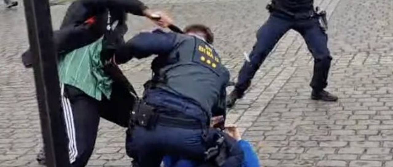 VIDEO: Grozljiv incident: Napadalec z nožem napadel udeležence shoda, policist v smrtni nevarnosti
