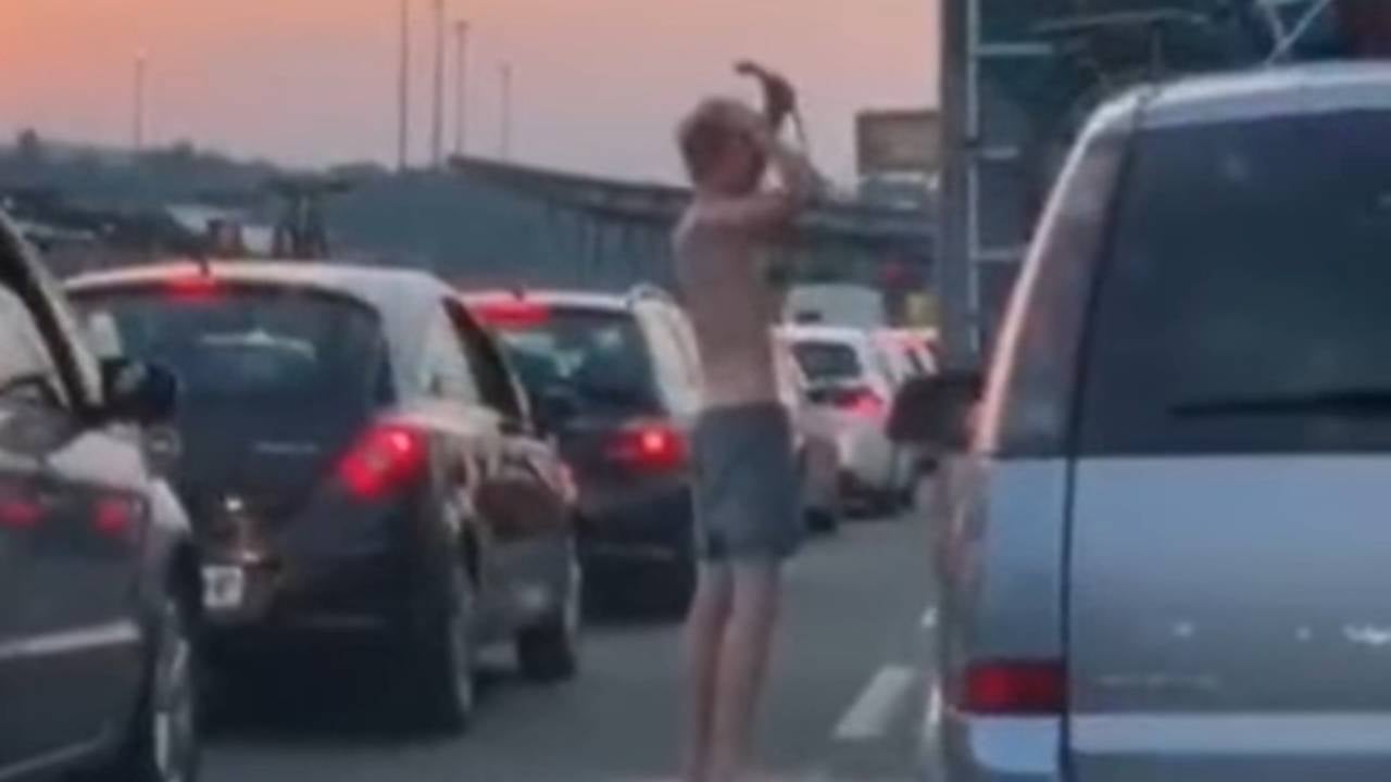 Saj ni res, pa je! Zaradi visokih temperatur in dolgega čakanja v koloni se je voznik stuširal kar na avtocesti.