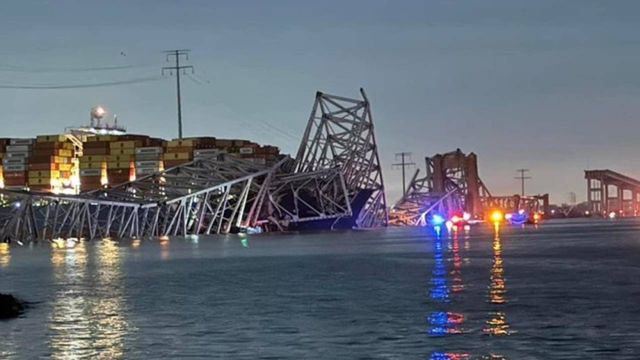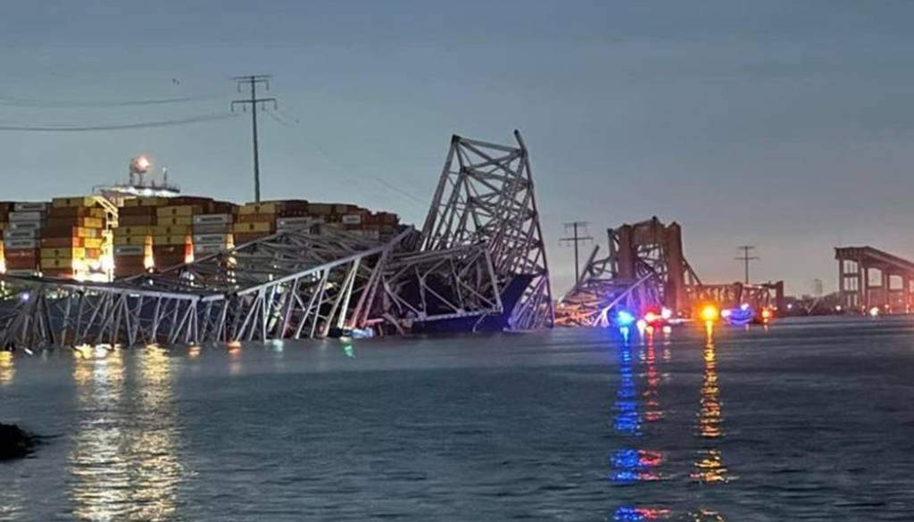 V zgodnjih jutranjih urah po lokalnem času je v reko Patapsco zgrmel eden od ključnih mostov v Baltimoru v ameriški zvezni državi Maryland, potem ko je vanj trčila večja tovorna ladja.