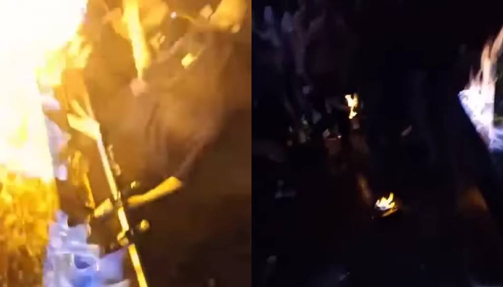 Po prvih podatkih je zagorela steklenica, ogenj pa je nato zajel goste, ki so stali v bližini pulta.