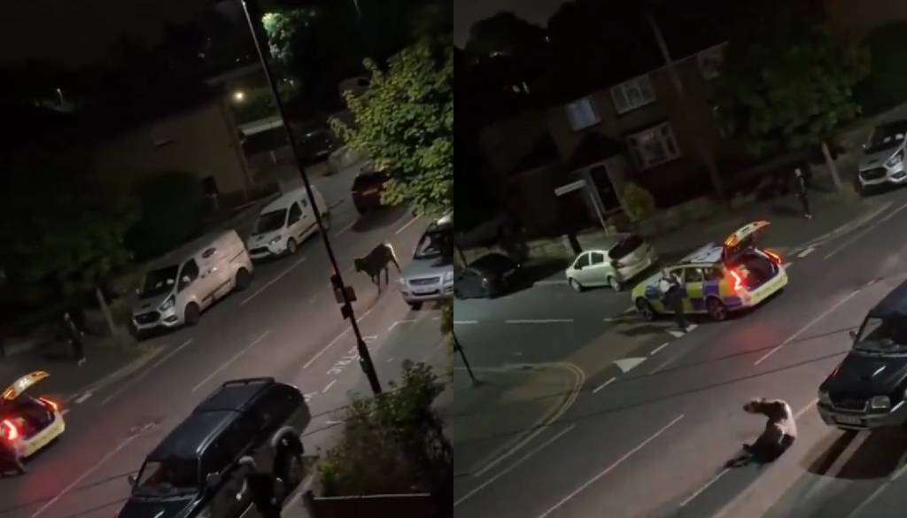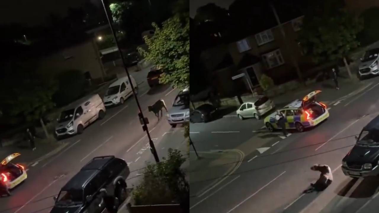 Incident se je zgodil v petek zvečer, ko so prebivalci na pomoč poklicali policijo, ko so videli sredi ulic manjšega mesta Staines-upon-Thames pobeglo kravo.