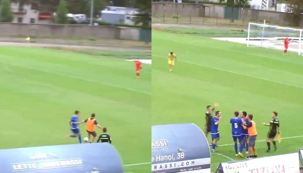 Ko je Pontassieve krenil v nevaren protinapad, je Guidotti stekel na zelenico in spotaknil nogometaša nasprotnega kluba.