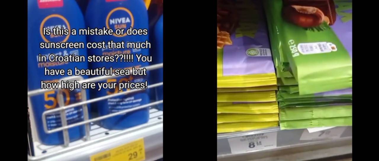Na profilu WorldTraveler je objavljenih več videoposnetkov iz hrvaških trgovin, kjer se denimo krema za sončenje prodaja za skoraj 30 evrov, čips za več kot štiri, mala čokolada pa za več kot osem evrov. Lokacije niso razkrite, a sodeč po cenah gre skoraj zagotovo za obmorske turistične kraje.