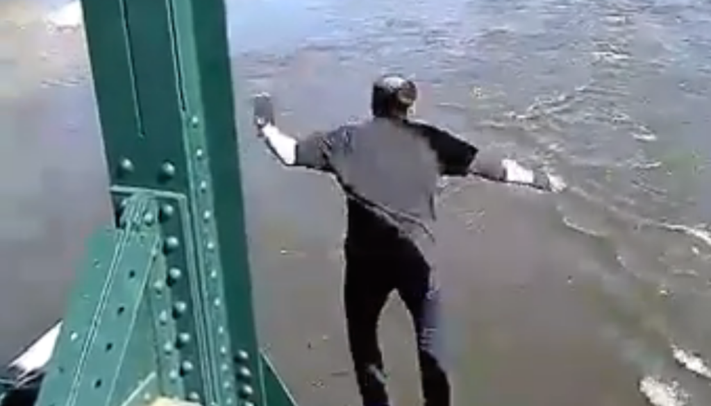 Za stavo skočil z železniškega mostu