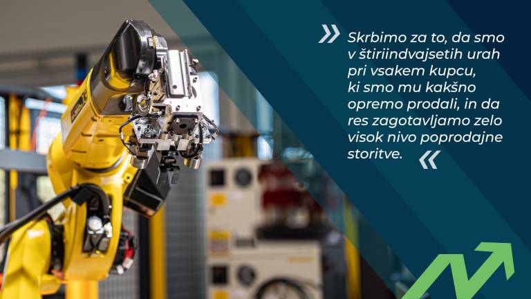 Potem to, kar pa mi res eksplicitno poudarjamo vsakemu, pa je poprodajna storitev. Skrbimo za to, da smo v štiriindvajsetih urah pri vsakem kupcu, ki smo mu kakšno opremo prodali, in da res zagotavljamo zelo visok nivo poprodajne storitve, torej vzdrževanja in popravil vseh vrst našim kupcem.«
