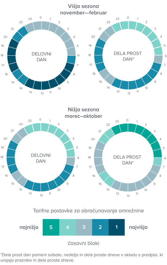 Odjemalci naj torej spremljajo, kakšno obračunsko moč jim je elektrodistributer določil v obdobju najdražjega časovnega bloka 1 v zimski sezoni in v teh dveh letih prilagodijo svoje navade, na način, da premaknejo porabo energije v kateregakoli od drugih časovnih blokov in tako dosežejo znižanje predlagane obračunske moči v časovnem bloku 1.