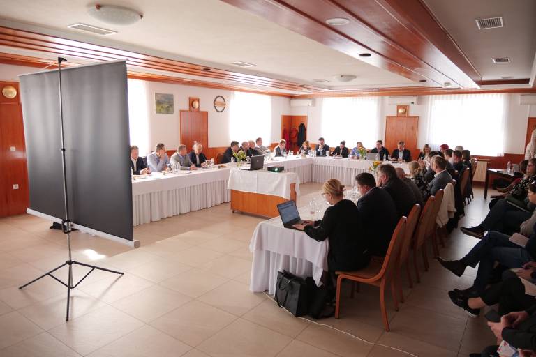 Minister Aleksander Jevšek s pomurskimi župani o črpanju sredstev v prejšnjem in zdajšnjem večletnem obdobju.