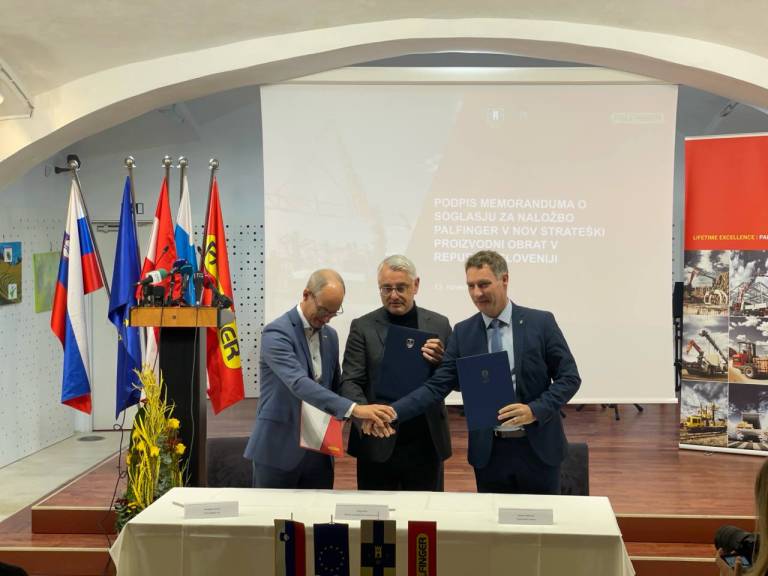 V Ormožu so danes minister za gospodarstvo, turizem in šport Matjaž Han, ormoški župan Danijel Vrbnjak in operativni direktor v podjetju Palfinger Alexander Susanek podpisali memorandum o soglasju za naložbo Palfinger v nov strateški proizvodni obrat na območju industrijske cone Glinokop.