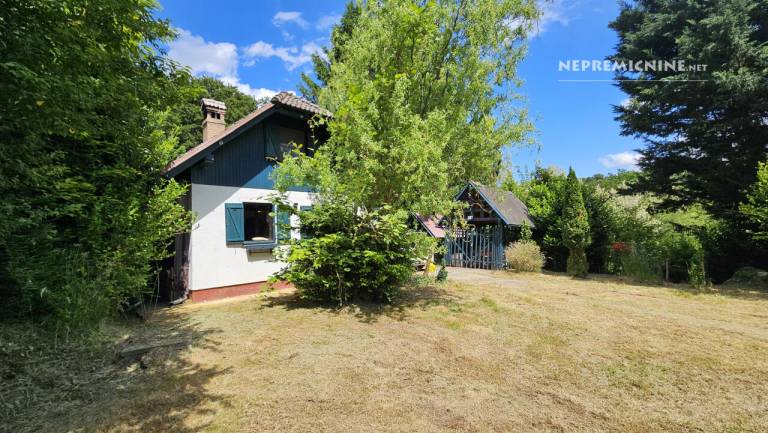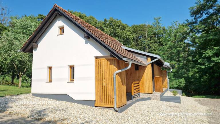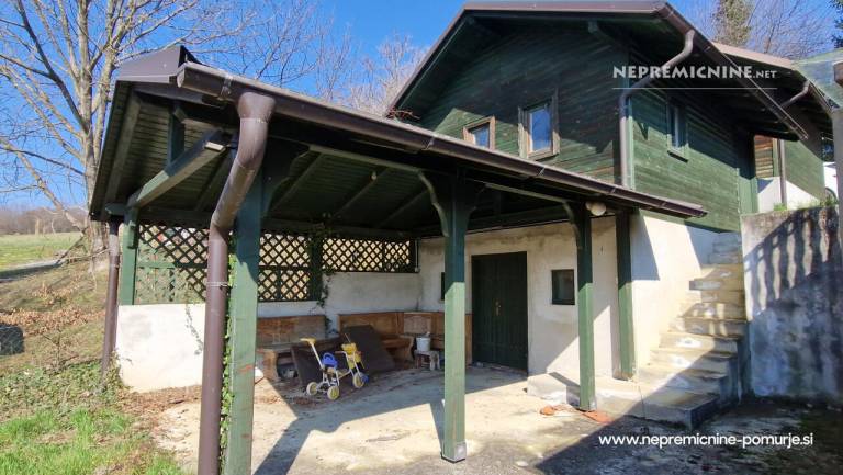 Na zemljišču stoji tudi dodatni leseni objekt (53,6 kvadratna metra), ki vključuje garažo in večnamenski prostor, v kleti pa kopalnico in pokrito teraso.