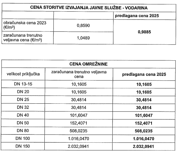 Na podlagi novega elaborata, ki so ga občine obravnavale na zadnjih rednih sejah, bo cena vodarine znašala 0,9885 evra na kubični meter vode, trenutno pa je veljavna cena 1,0489 evra na kubični meter.