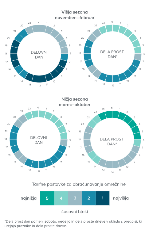 Najdražji časovni blok bo v zimskem obdobju, ko je obremenitev omrežja največja, medtem ko bo v nižji sezoni omrežnina nekoliko nižja.