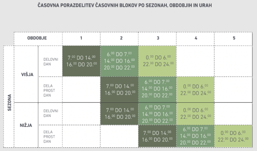 Novost, ki jo prinaša novi sistem obračunavanja omrežnine, je razdelitev dneva na časovne bloke ter uvedba dveh sezon – višje in nižje.